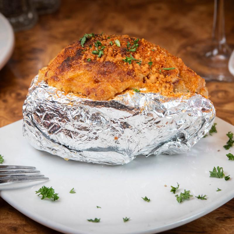Our famous twice-baked potato is loaded with sautéed onions, bacon, cheese, and sour cream. Big enough to share.